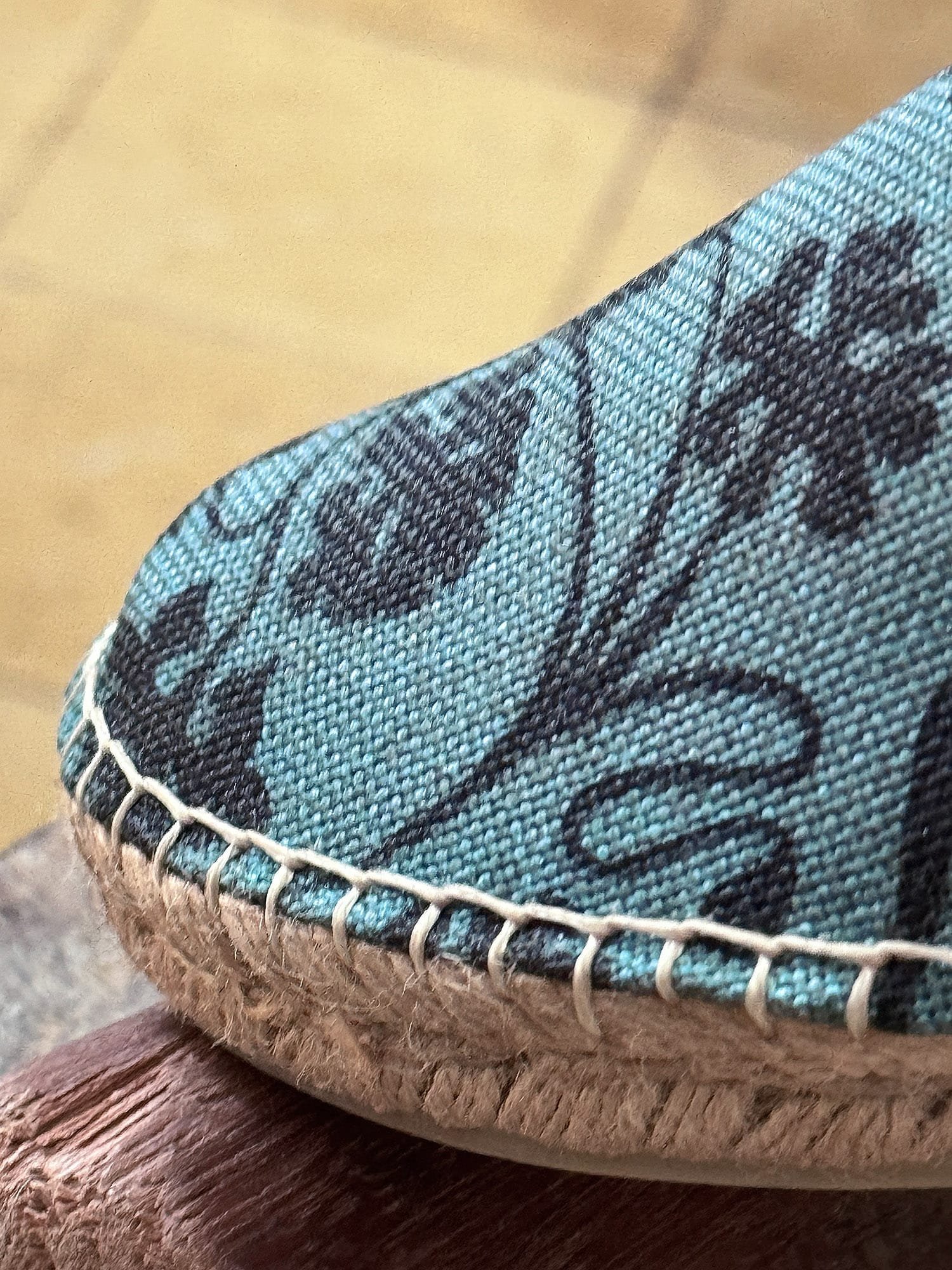 Espadrilles are crafted from natural materials like jute, a water-sensitive vegetable fiber. For this reason, regular washing of your espadrilles is not recommended.