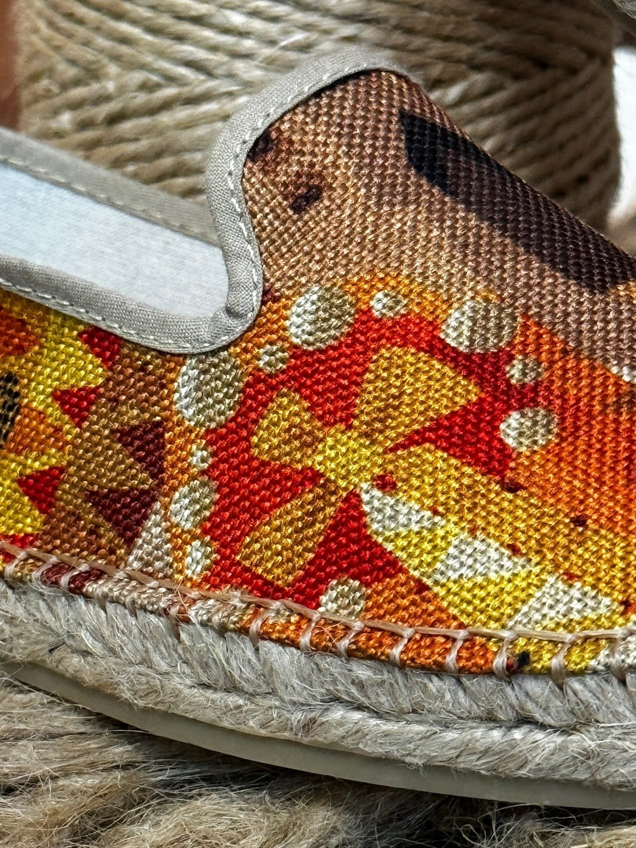 A flat, printed espadrille paying homage to the Sagrada Familia. Inspired by the whimsical and colourful forms of Antoni Gaudí’s basilica, a true icon of Barcelona. The perfect, practical souvenir for strolling through Barcelona in style.