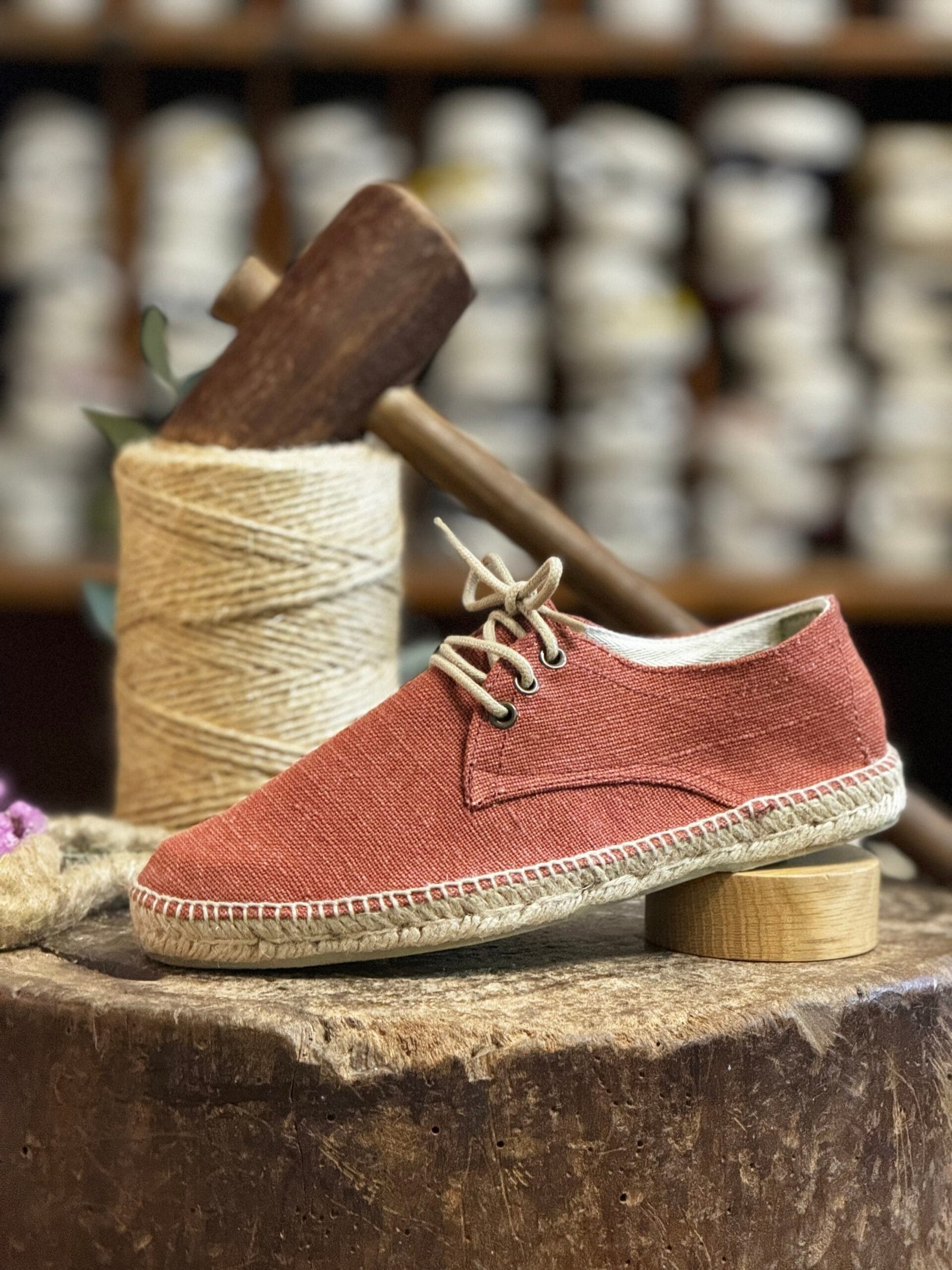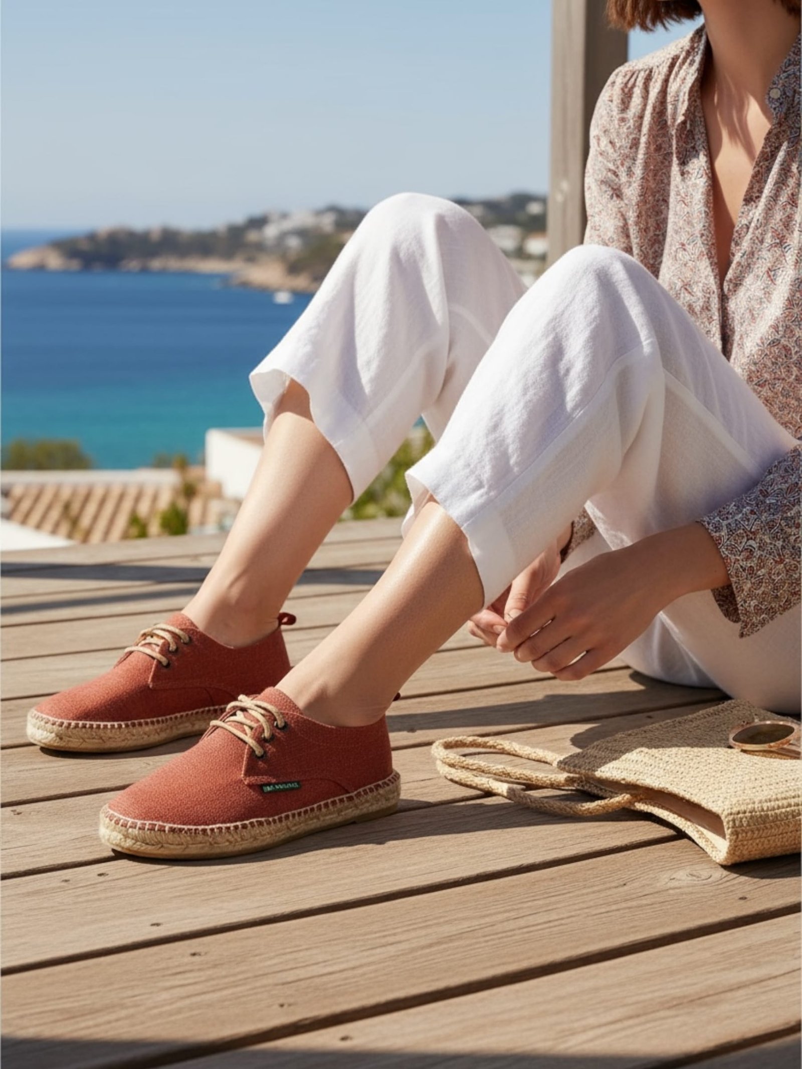 Espardenya per a dona feta a mà a Barcelona. El model Mundet combina disseny blucher, sola còmoda i estil mediterrani. Perfecte per a l’estiu.